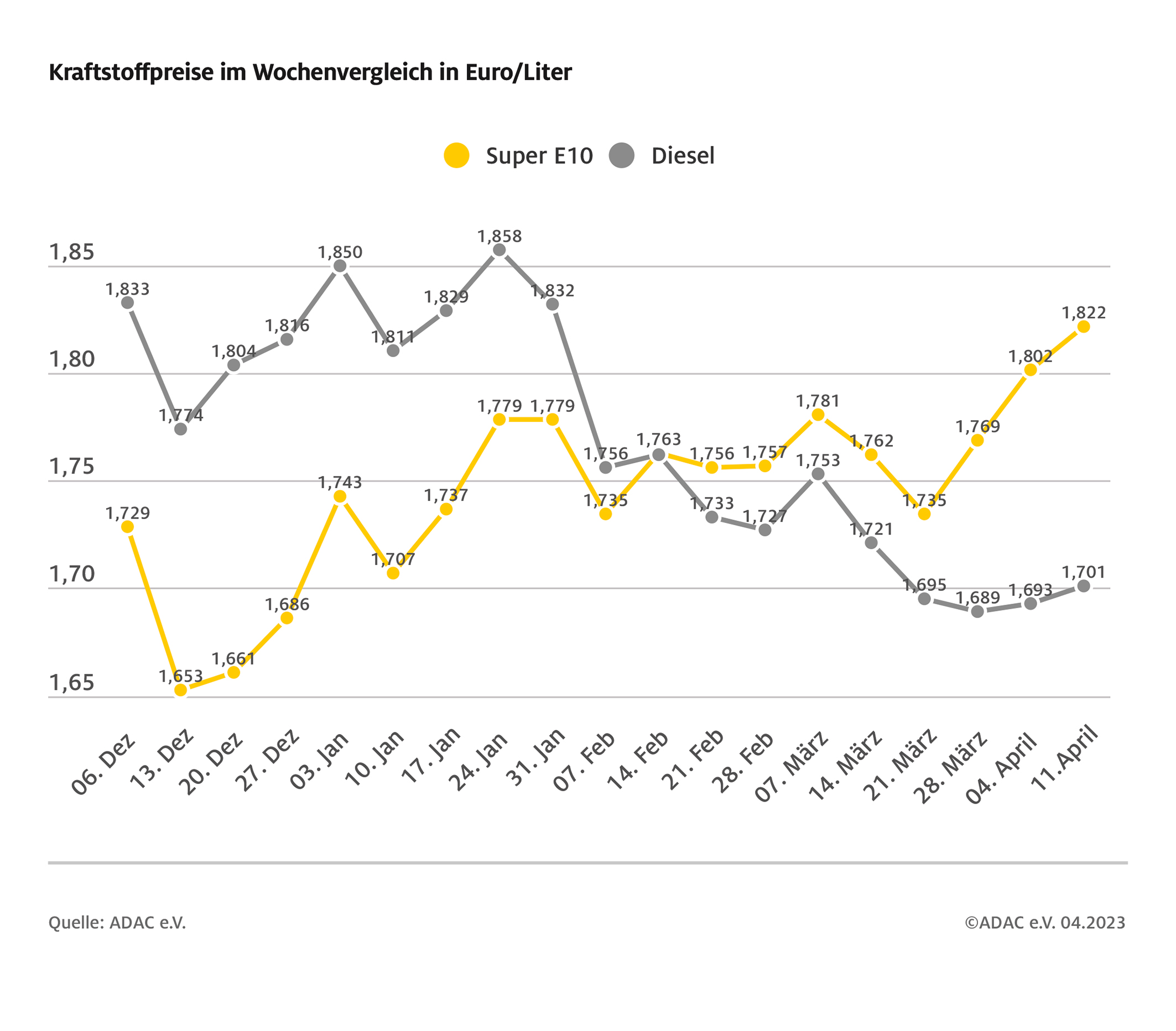 Kraftstoffpreise im Wochenvergleich