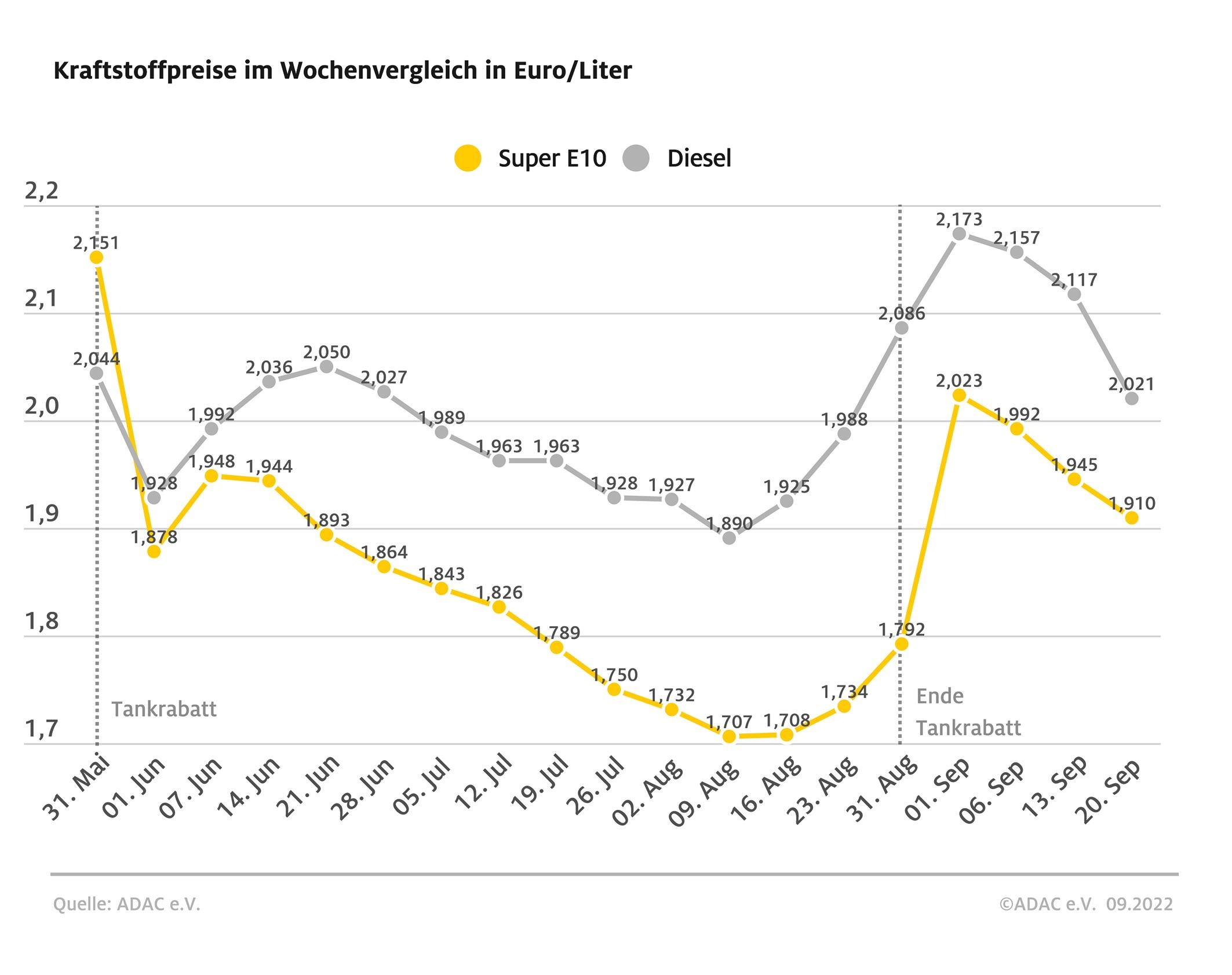 Kraftstoffpreise im Wochenvergleich