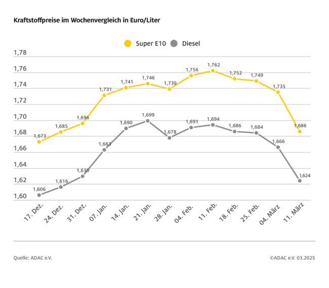 ADAC: Dieselpreis sackt auf neues Jahrestief ab – Nahendes Ende der Heizperiode sorgt für weiteren Preisrückgang – Benzinpreis im Vergleich zur Vorwoche unverändert