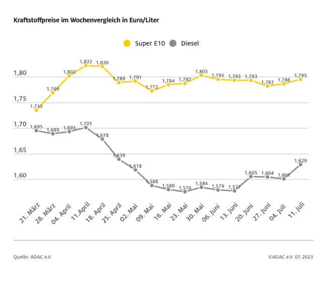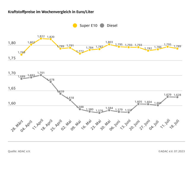 München (ots) – Die Kraftstoffpreise an den deutschen Tankstellen bewegen sich weiterhin kaum von der Stelle. Vor allem der Tagesdurchschnittspreis für Super E10 ist seit Wochen relativ stabil und pendelt dabei knapp unterhalb der Marke von 1,80 Euro. Laut aktueller ADAC Auswertung der Kraftstoffpreise in Deutschland kostet ein Liter Super E10 im bundesweiten Mittel 1,789 Euro,…