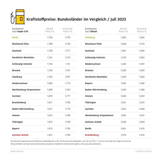 ADAC: Niedrigste Kraftstoffpreise in Berlin und Hamburg – ADAC Bundesländervergleich: Sachsen-Anhalt und Brandenburg am teuersten – Regionale Preisunterschiede von bis zu 7,5 Cent