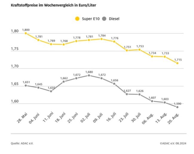 ADAC: Benzinpreis fällt auf Jahrestiefstand – Diesel zuletzt Mitte Juni 2023 günstiger